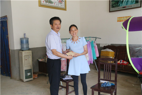 在枫树村,院领导分别前往9户结对帮扶对象家中进行走访慰问,分别将3000元慰问金送到他们手中。这9户帮扶对象是该村部扶贫攻坚工作的“建档立卡户”,均为因病致贫,院领导充分结合自身医疗资源优势,对他们进行了一对一结对帮扶。在他们家中,院领导详细了解了他们的身体状况,询问了他们各自的扶贫第一书记,扶贫主任以及扶贫政策中得到的实惠等情况。同时向他们宣教了临床医学院/附属医院健康扶贫的相关政策,鼓励他们重拾对美好生活的信心,受到关怀的村民感动不已,连连道谢。